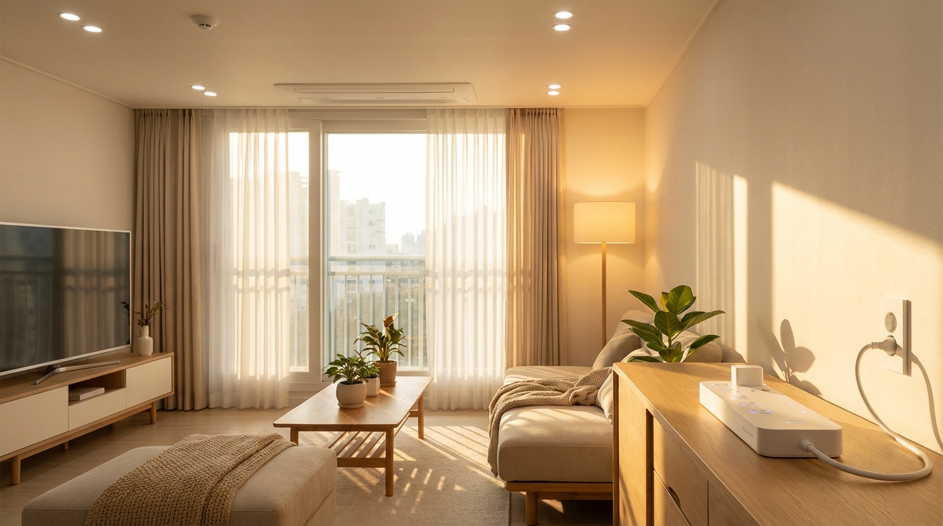 ① 에어컨 설정온도를 26~28°C로 유지(1°C당 약 7% 절감) ② 대기전력 차단 멀티탭 사용(월 10~15kWh 절감) ③ LED 조명 교체(백열등 대비 80% 절감) ④ 세탁기·식기세척기 모아서 한 번에 돌리기 ⑤ 냉장고 적정 온도 유지(냉장 3~5°C, 냉동 -18°C) ⑥ 냉장고 문 여는 횟수 최소화 ⑦ 에너지효율 1등급 가전 사용 ⑧ 미사용 방의 전등 끄기 ⑨ 선풍기와 에어컨 병행 사용 ⑩ 겨울철 전기장판 대신 온수매트 사용